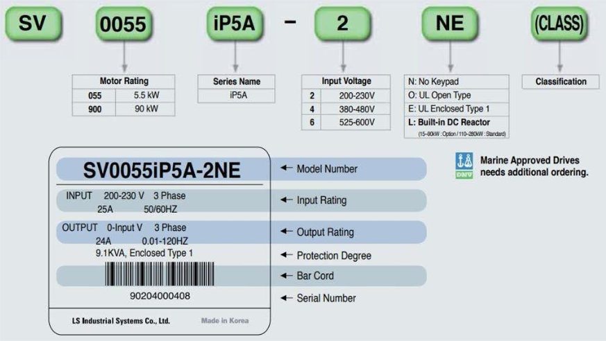 ویژگی‌های اینورتر5.5 kw سه فاز ls سری IP5