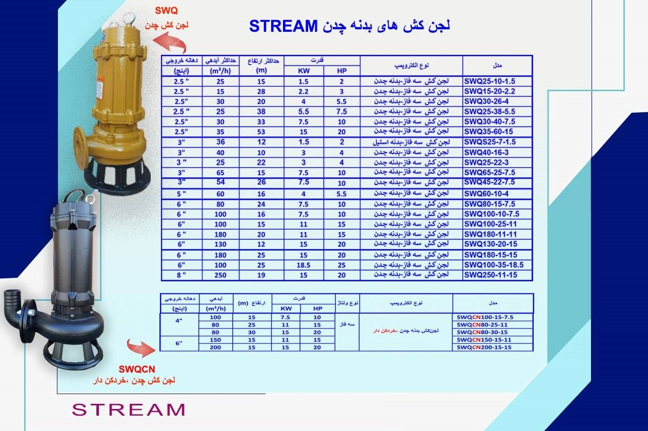 لجن کش 16 متری 6 اینچ 10 اسب سه فاز بدنه چدنی استریم مدل SWQ100-10-7.5