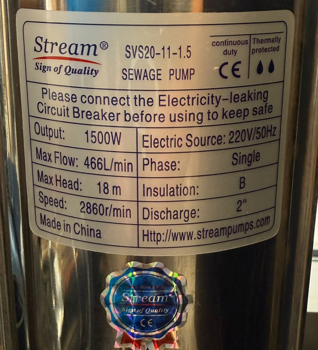 پمپ لجنکش 18 متری بدنه استیل 2 اینچ آبدهی بالا تکفاز استریم مدل SVS20-11-1.5