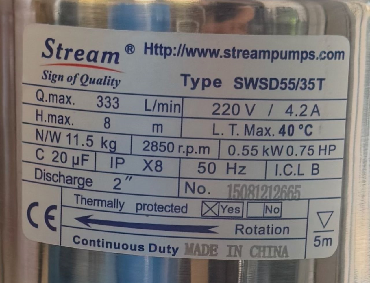 پمپ لجنکش بدنه استیل 8 متری فلوتردار استریم مدل SWSD55/35 T (استریم قدیمی)