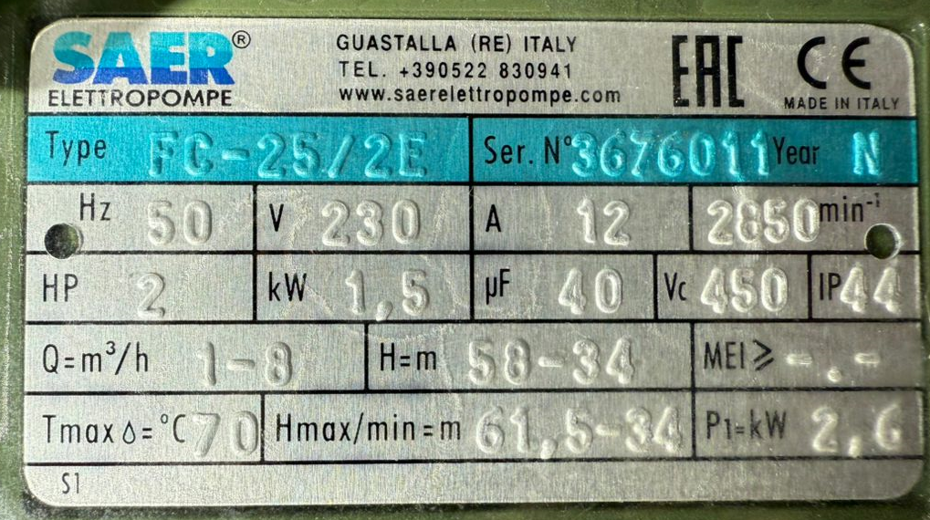 شرکت SAER Elettropompe یک تولیدکننده شناخته شده در صنعت پمپ با سابقه بیش از ۶۰-۷۰ سال هست.